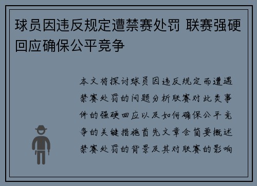本文将探讨球员因违反规定而遭遇禁赛处罚的问题,分析联赛对此类事件的强硬回应以及如何确保公平竞争的关键措施。首先,文章会简要概述禁赛处罚的背景及其对联赛的影响,接着深入分析四个方面:一是联赛对球员违规行...