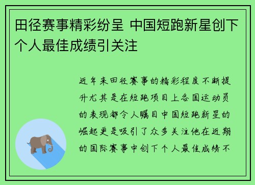 • 田径赛事精彩纷呈 中国短跑新星创下个人最佳成绩引关注