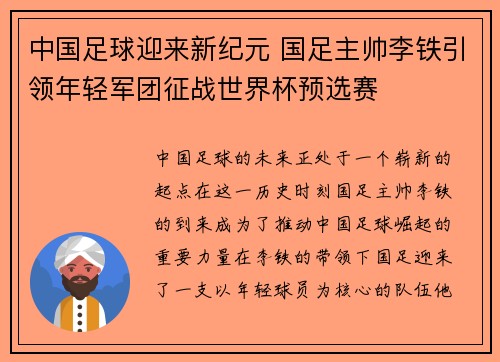 • 中国足球迎来新纪元 国足主帅李铁引领年轻军团征战世界杯预选赛