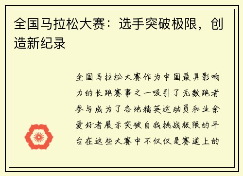 • 全国马拉松大赛:选手突破极限,创造新纪录