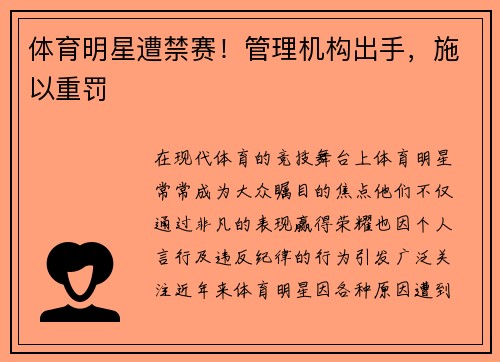 • 体育明星遭禁赛!管理机构出手,施以重罚