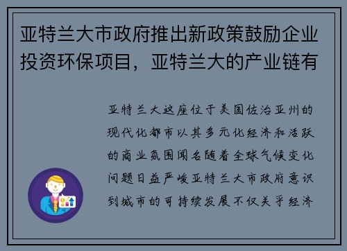 亚特兰大,这座位于美国佐治亚州的现代化都市,以其多元化经济和活跃的商业氛围闻名。随着全球气候变化问题日益严峻,亚特兰大市政府意识到,城市的可持续发展不仅关乎经济增长,更需要与环境保护齐头并进。基于这一...